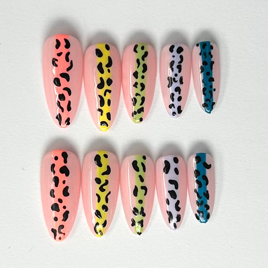 Desata tu lado más salvaje con la Colección Fiera, una combinación audaz de colores vibrantes y estampado animal que refleja fuerza, confianza y actitud. Inspirada en la belleza indomable de la naturaleza, esta manicura es perfecta para quienes no temen destacar.
