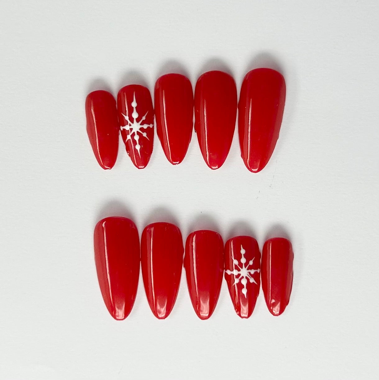 Con detalles que evocan la calidez navideña, estas uñas press-on combinan tonos clásicos de la temporada, como el rojo, blanco y destellos brillantes, perfectos para destacar en todas tus celebraciones. Inspiradas en la alegría y el encanto de la Navidad, este diseño es ideal para quienes desean lucir un look elegante y lleno de espíritu festivo.